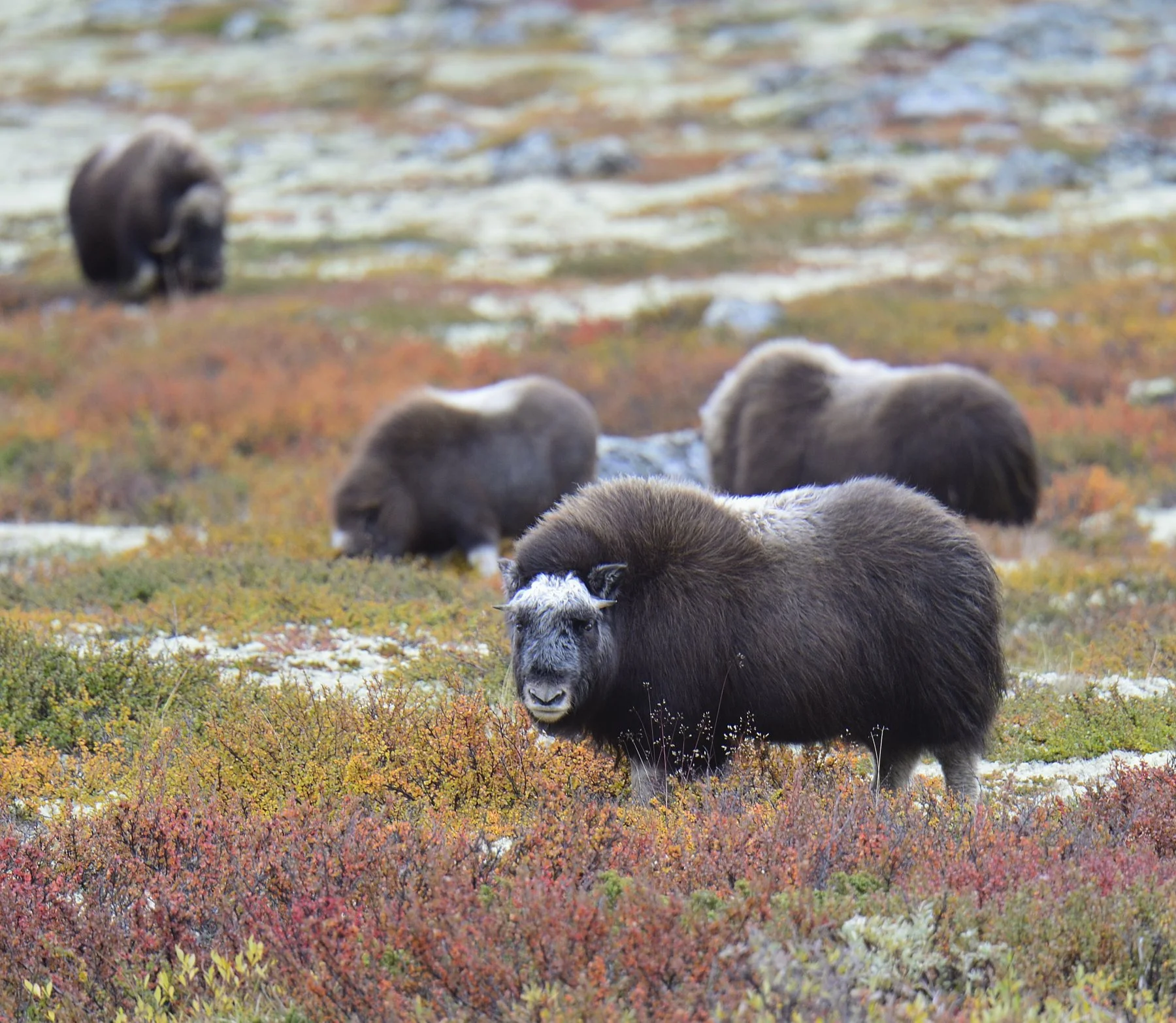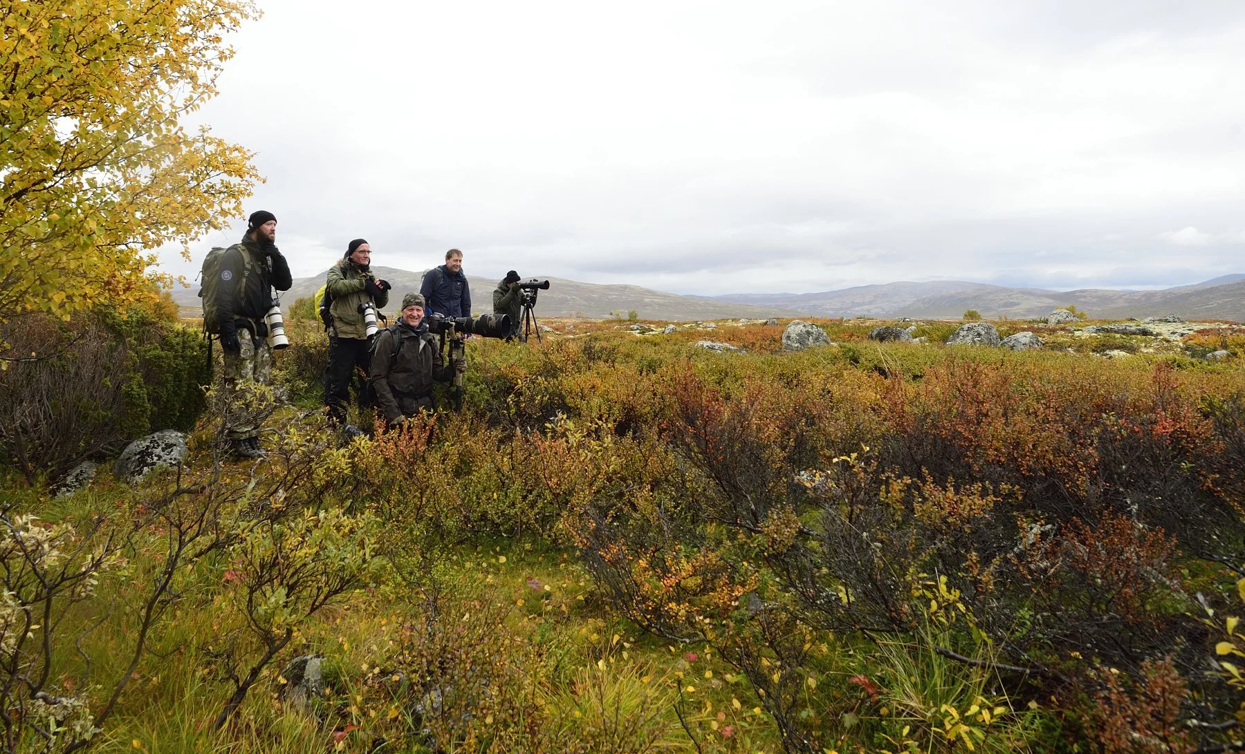Dovrefjell er et enormt område af kuperet terræn, knæhøj bevoksning, der skjuler sten og huller som gør en lang dag i fjellet til en hård og udfordrende affære. Til gengæld er området meget smukt med masser af motiver at fotografere. Allerhelst vil vi gerne have billeder af de berømte moskusokser, der lever i området. Her er en bestand på ca. 300 dyr som er spredt ud i større eller mindre flokke. Snart skal vi erfare, at de ikke lige sådan er til at finde.